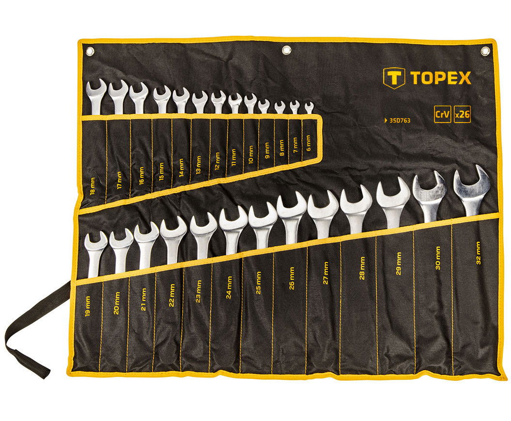 - A TOPEX csillag-villáskulcs készlet kiválóan beválik szerelési, barkácsolási munkákban.